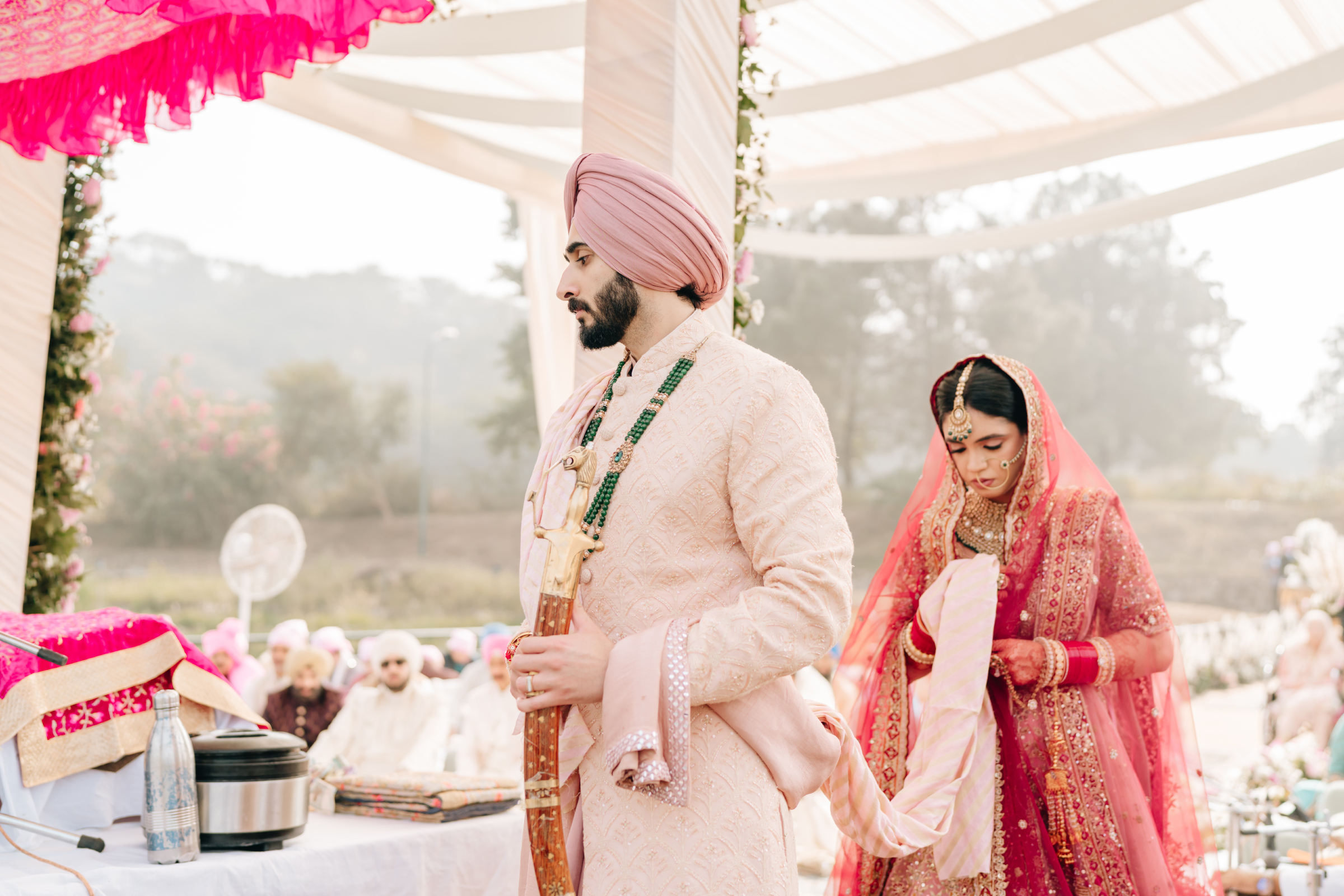 Aashna Kaur and Adhiraj Tomar’s wedding at Forest Hill Golf & Country Club Resort, Chandigarh, was a graceful fusion of vibrant colours, modern themes, and heartfelt tradition. Based in the United States—Aashna, a healthcare scientist, and Adhiraj, a mechanical engineer—the Sikh couple returned to Chandigarh to celebrate their union with family and friends in a setting that beautifully balanced serenity and celebration.