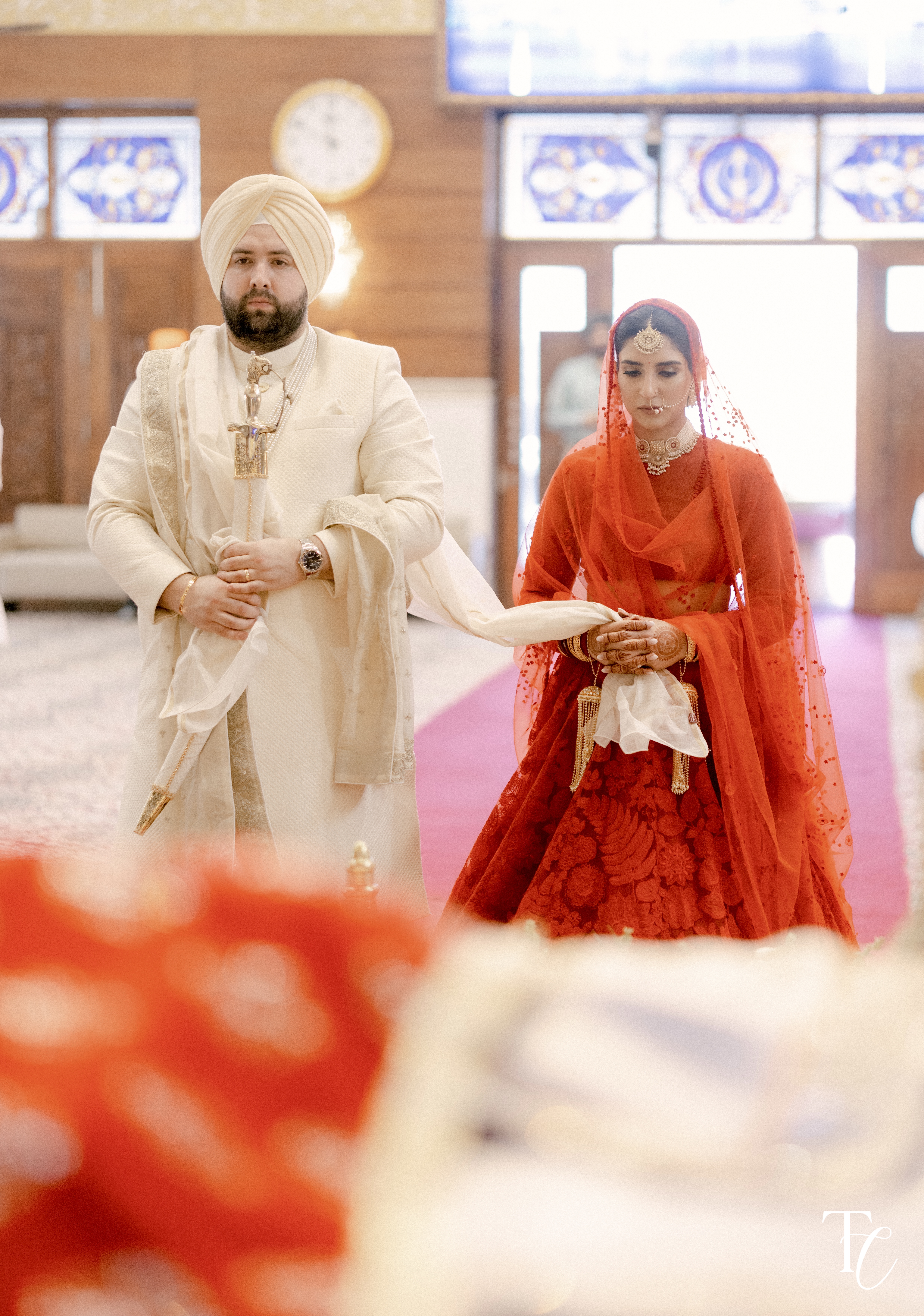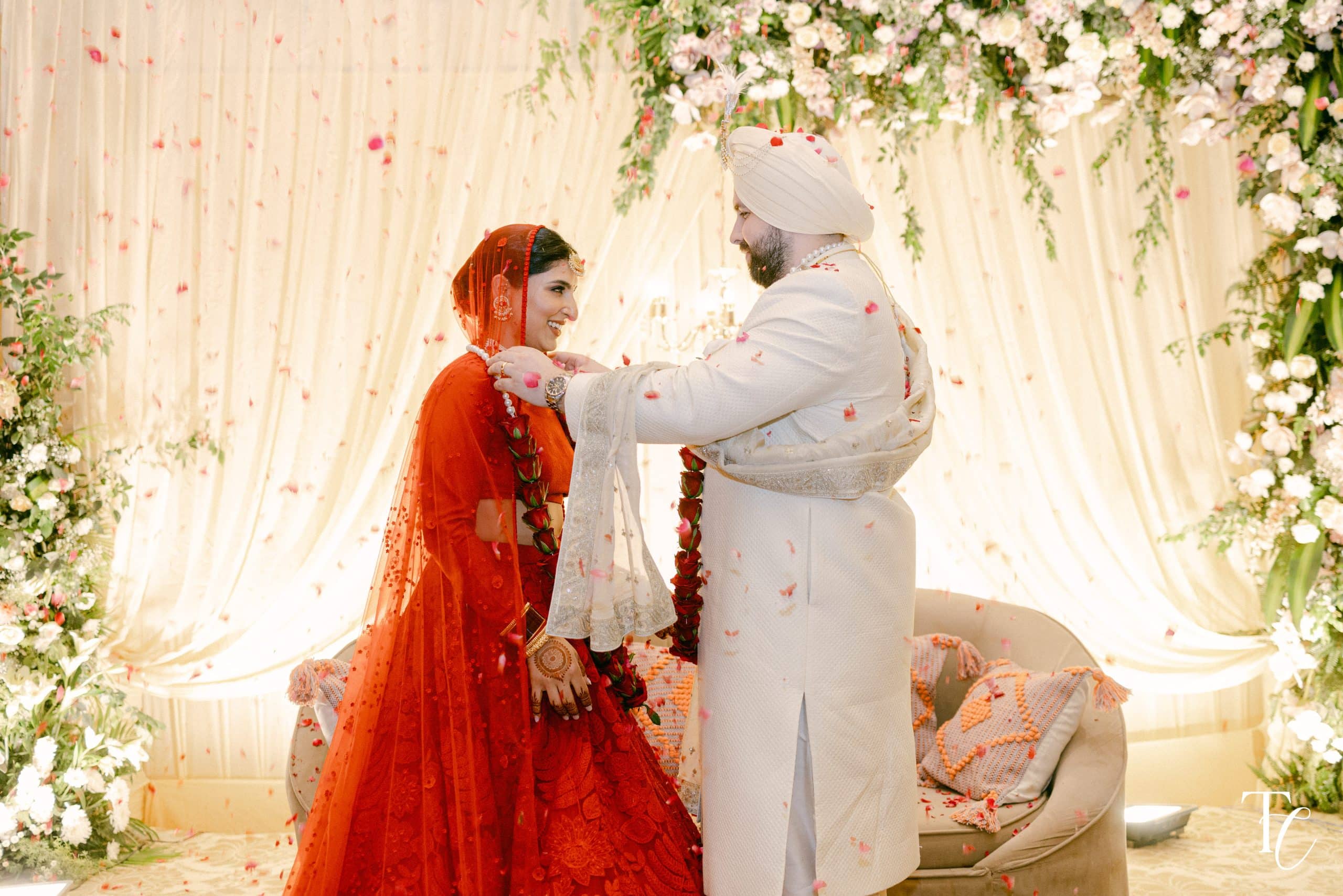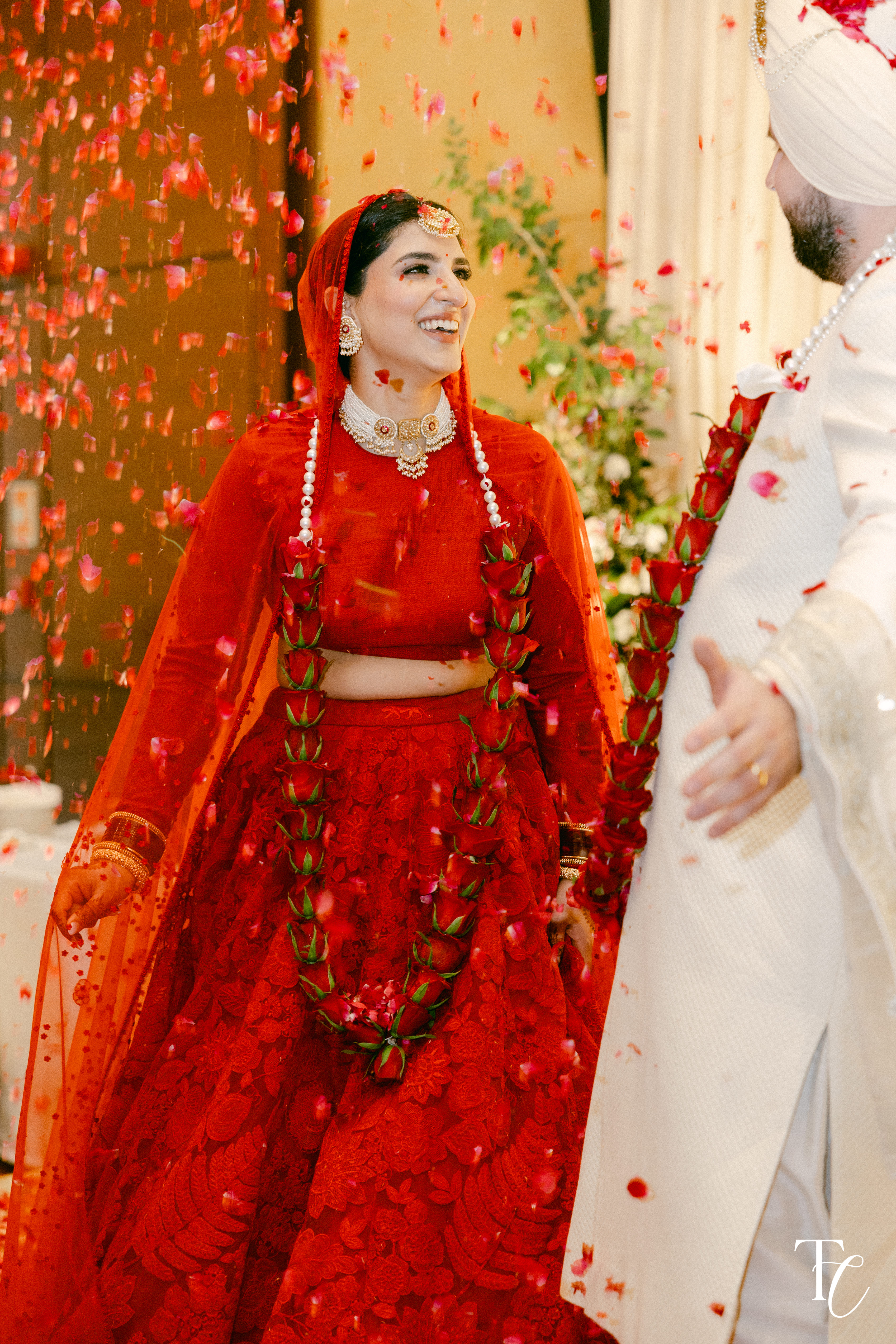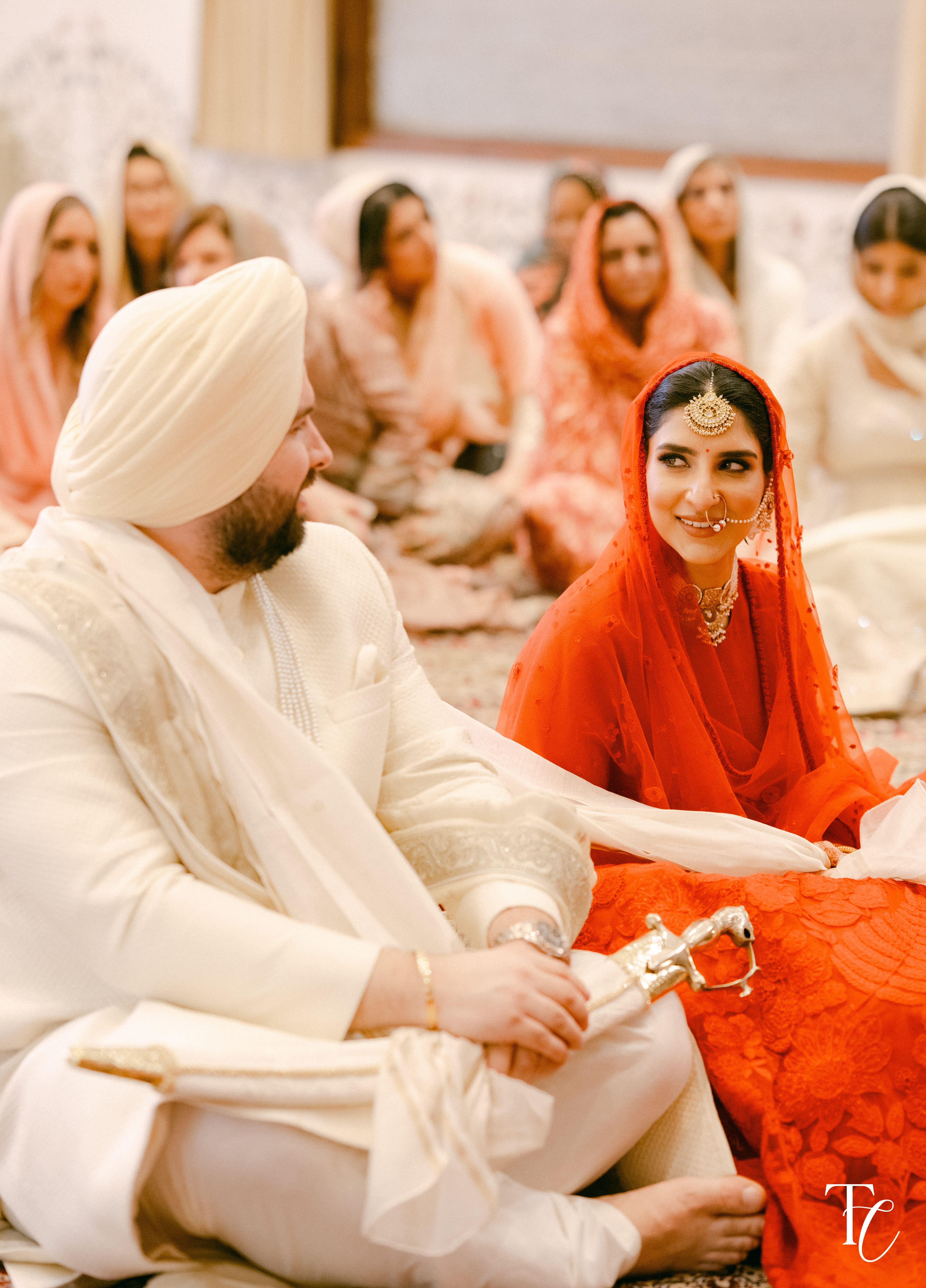 Raveena and Michael wanted their Anand Karaj to reflect modern luxury with soft floral grandeur – fresh whites, blush pinks, and muted greens setting a tone of serene elegance. The ceremony was simple, heartfelt, and sacred, with vows exchanged in the gentle glow of the morning, surrounded by close family and an intimate circle of love. It was a moment wrapped in warmth, quiet joy, and the timeless beauty of tradition blending seamlessly with contemporary grace.