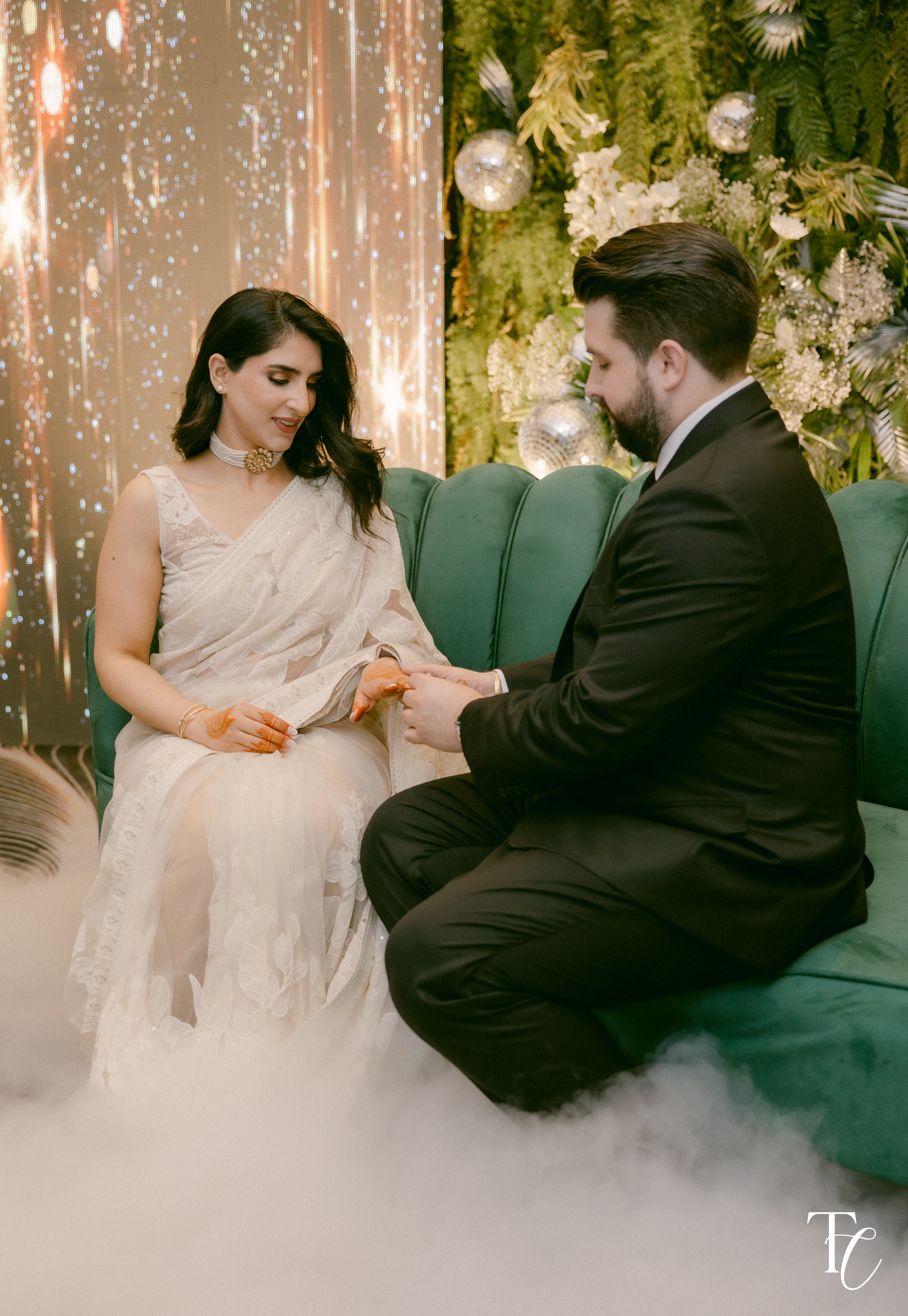 Following their ring ceremony, the Sangeet came alive with music, lights, and unstoppable energy. From dazzling family performances to spontaneous dance-offs, every moment was filled with rhythm and cheer. The melodies, the sparkle of laughter, and the whirl of vibrant outfits turned the celebration into an unforgettable experience – setting the perfect tone for the days to come.