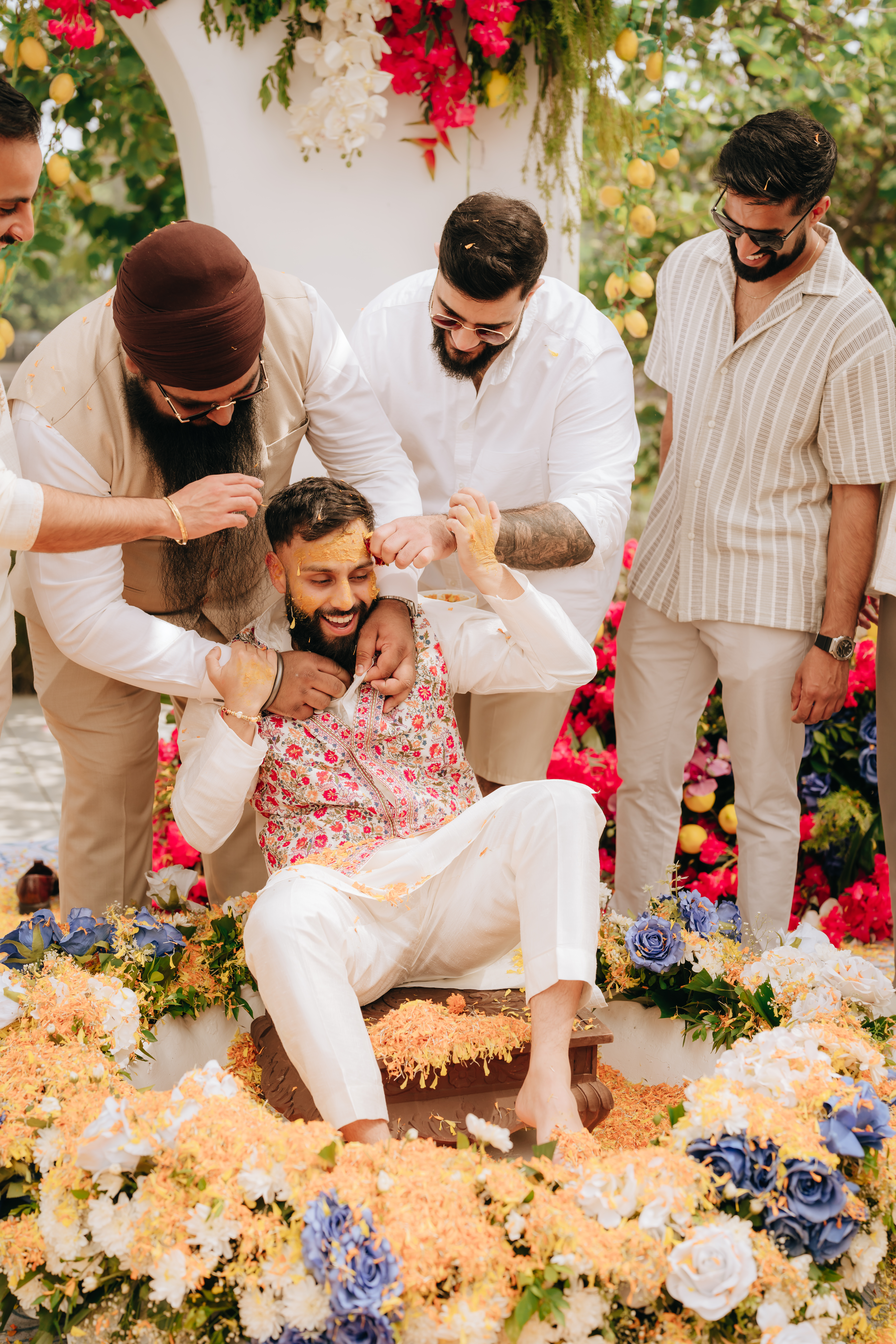 For the couple, this Haldi is imagined as a joyful fusion of Indian traditions and Mediterranean coastal romance. The vibe is sunlit, breezy, and full of warmth – celebrating love with splashes of yellow, ocean blues, and the rustic elegance of seaside towns.